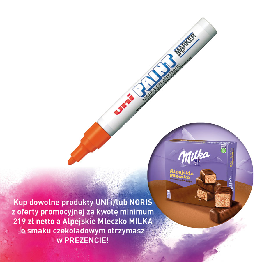 jm.: Kup dowolne produkty UNI i/lub NORIS z oferty promocyjnej za kwotę minimum 219 zł netto a Alpejskie Mleczko MILKA o smaku czekoladowym otrzymasz w PREZENCIE!