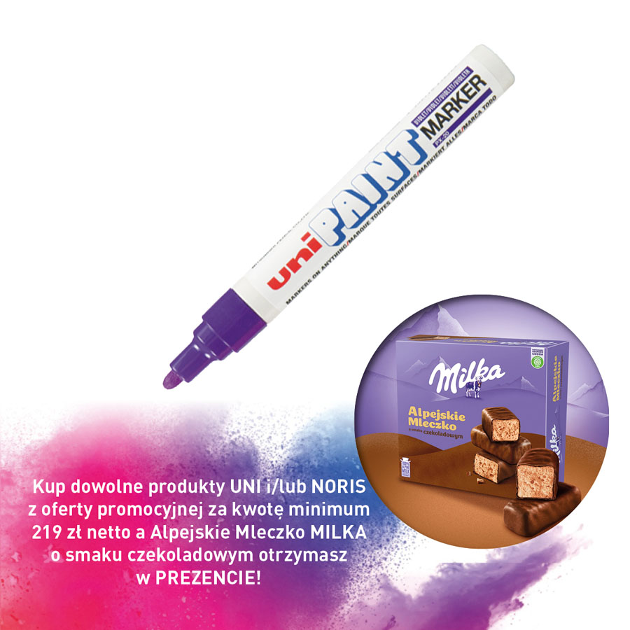 jm.: Kup dowolne produkty UNI i/lub NORIS z oferty promocyjnej za kwotę minimum 219 zł netto a Alpejskie Mleczko MILKA o smaku czekoladowym otrzymasz w PREZENCIE!