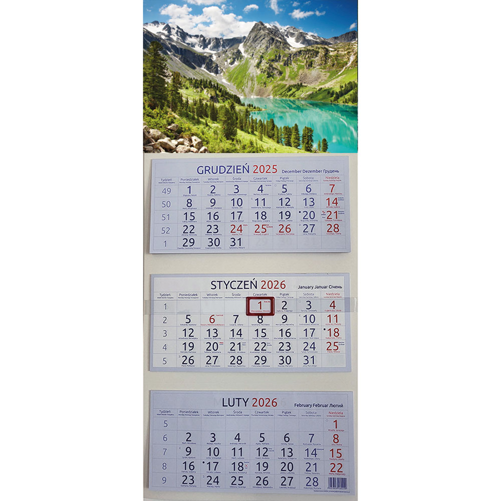 - kalendarium: PL/GB/D/RUS/FR, imieniny i święta, fazy księżyca i zachody słońca, na dole kalendarium plan całego roku