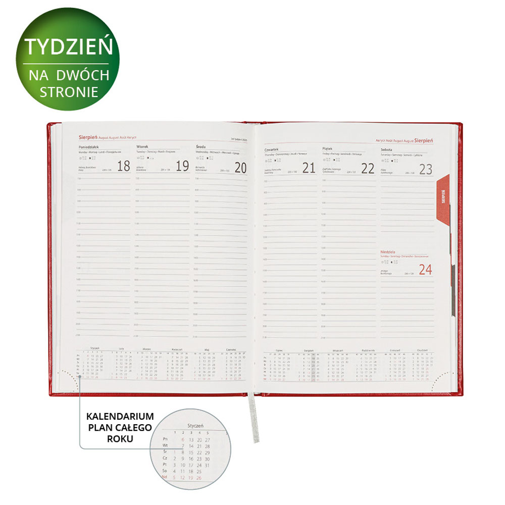 - układ: tydzień na dwóch stronach