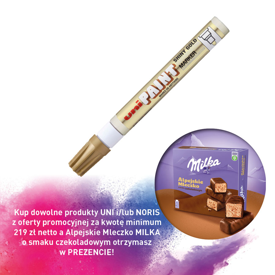 jm.: Kup dowolne produkty UNI i/lub NORIS z oferty promocyjnej za kwotę minimum 219 zł netto a Alpejskie Mleczko MILKA o smaku czekoladowym otrzymasz w PREZENCIE!