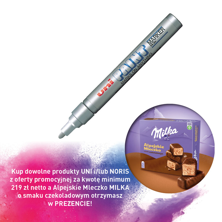 jm.: Kup dowolne produkty UNI i/lub NORIS z oferty promocyjnej za kwotę minimum 219 zł netto a Alpejskie Mleczko MILKA o smaku czekoladowym otrzymasz w PREZENCIE!
