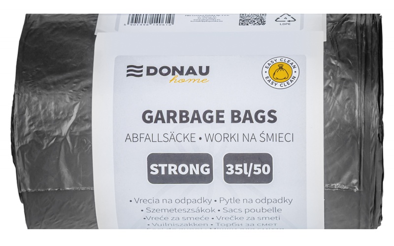 wyjątkowo wytrzymałe worki wykonane z grubego, elastycznego tworzywa LDPE zaprojektowane z myślą o biurach, przestrzeniach komunalnych i gospodarstwach domowych odporne na rozdarcia, przeciążenia i wilgoć grubość folii: 20 μm rozmiar: 49x56 cm pojemność: 35l 50 szt. w j.s. kolor: czarny
