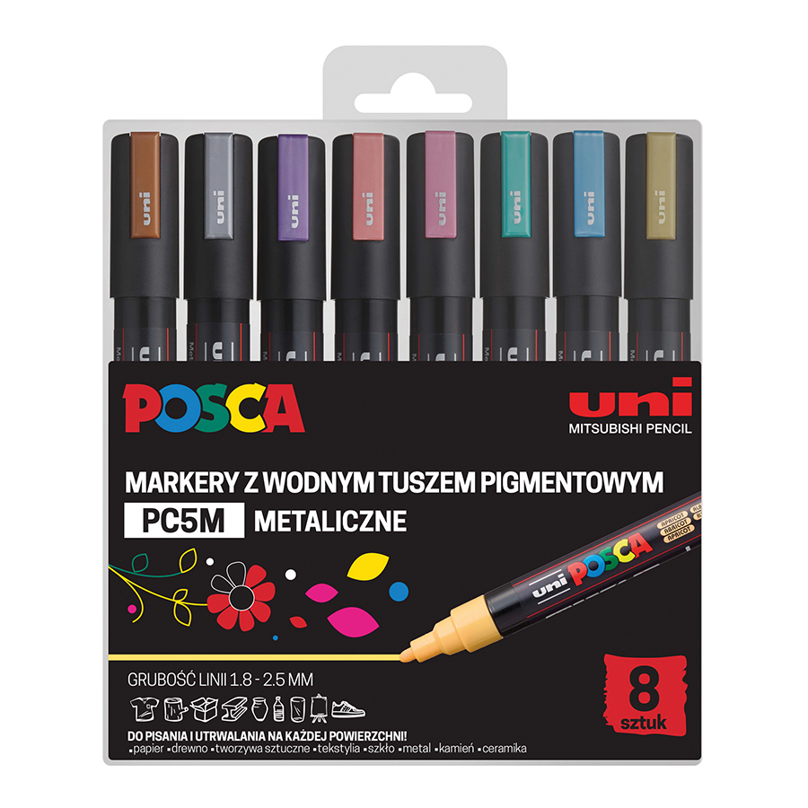 Marker UNI Posca wyposażony jest w okrągłą końcówkę, która umożliwia pisanie i malowanie linią o grubości od 1,8 do 2,5 mm. Zapewnia to precyzyjne i wyraziste linie, idealne do różnorodnych zastosowań artystycznych i dekoracyjnych.