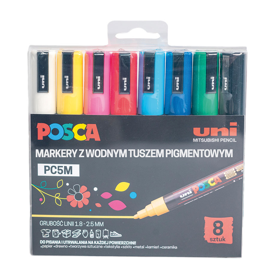 Marker UNI Posca wyposażony jest w okrągłą końcówkę, która umożliwia pisanie i malowanie linią o grubości od 1,8 do 2,5 mm. Zapewnia to precyzyjne i wyraziste linie, idealne do różnorodnych zastosowań artystycznych i dekoracyjnych.